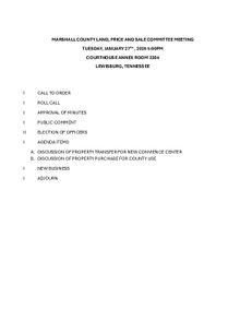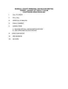 Committee meetings of the Marshall County Commission will have their agendas posted at least 48 (forty-eight) hours in advance of their meeting.