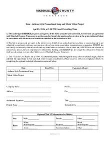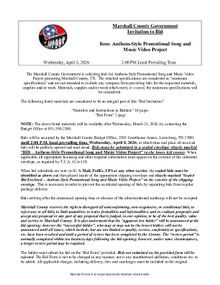 The Marshall County Government is soliciting bids for Anthem-Style Promotional Song and Music Video Project promoting Marshall County, TN.