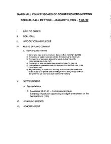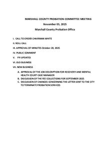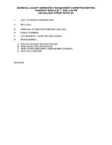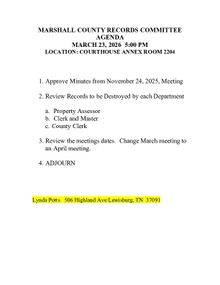 Committee meetings of the Marshall County Commission will have their agendas posted at least 48 (forty-eight) hours in advance of their meeting.